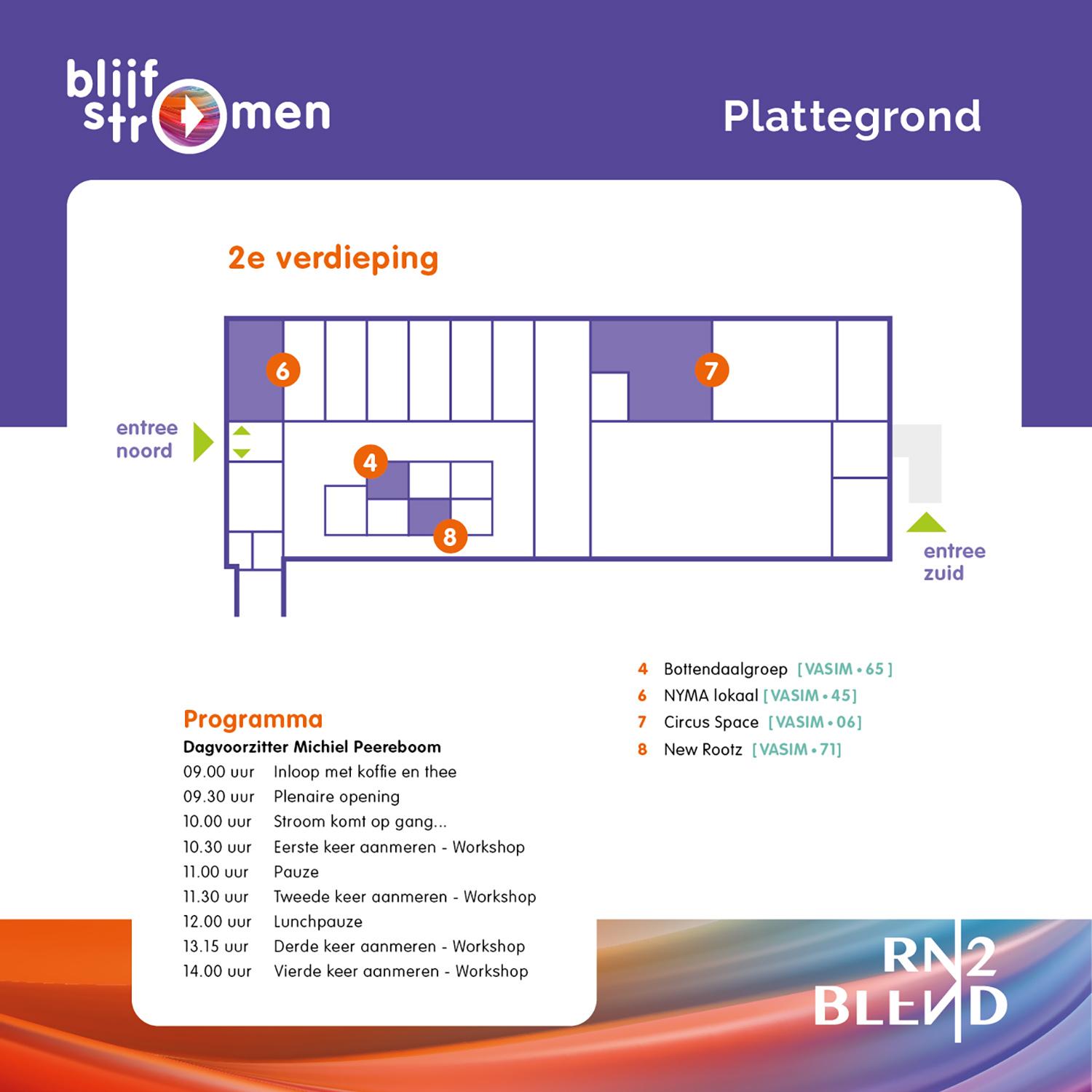 Met het congres ‘Blijf Stromen’ kwam op 24 september een einde aan het onderzoeksprogramma RN2Blend. In dat programma werd vijf jaar lang onderzoek gedaan naar gedifferentieerd werken in de verpleegkunde. Om deelnemers te werven en de boodschap helder en consistent over te brengen ontwikkelde Marker Ontwerp samen met het projectteam een frisse look-and-feel. O.a. save-the-dates, uitnodigingen, banieren, posters en digitale dragers werden vertaald naar deze huisstijl.