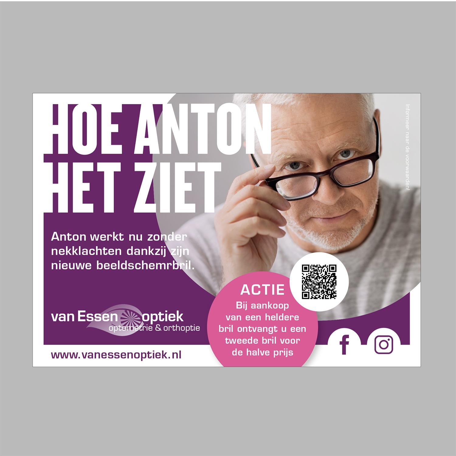 Bij Van Essen Optiek in Venray ben je verzekerd van vakkundige oogzorg. Je kunt bij hen terecht voor een deskundig en eerlijk advies over brillen, glazen, contactlenzen, zonnebrillen en uitgebreide oogzorg. Hun oogspecialisten adviseren je graag. Bij zo'n kwalitatieve zaak hoor ook een professionele uitstraling. Marker Ontwerp ontwikkelde het concept en vormgeving: persoonlijk, herkenbaar, inhoudelijk en in de juiste kwalitatieve sfeer. Goede informatie van de specialist in combinatie met de specifieke wensen van de klant maken samen het verhaal. Marker Ontwerp verzorgt met enige regelmaat de opmaak van folders, DM's, posters, stoepborden en online afbeeldingen. Dat is hoe Marker Ontwerp het ziet :-)